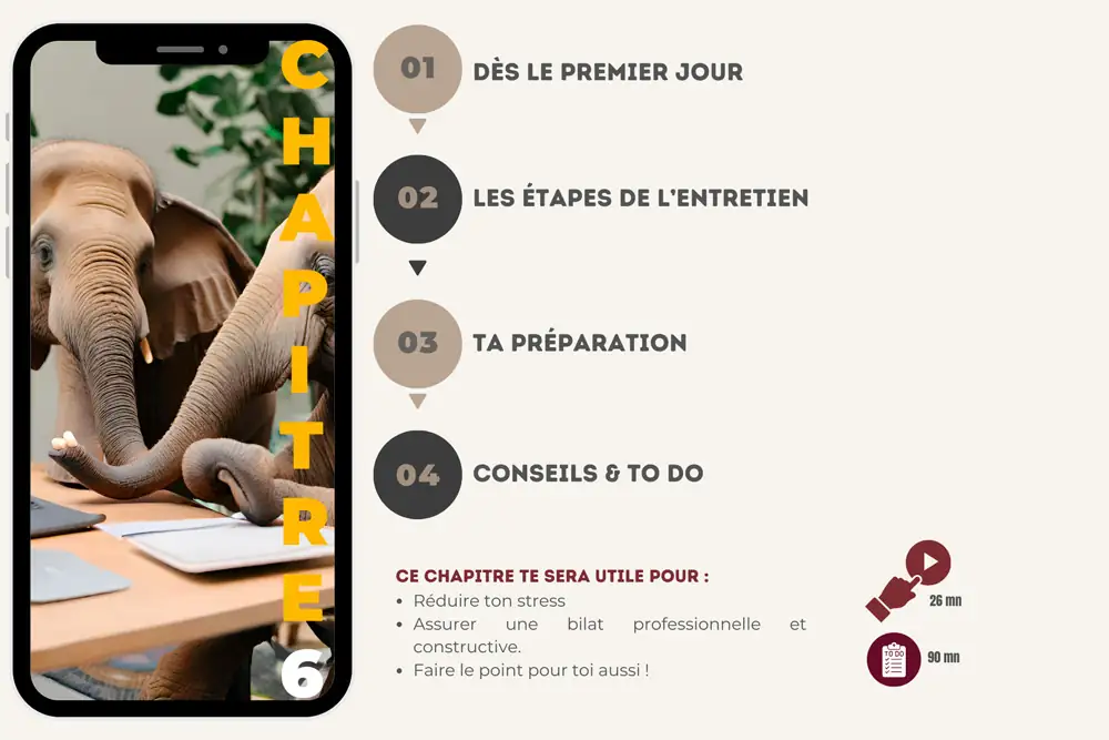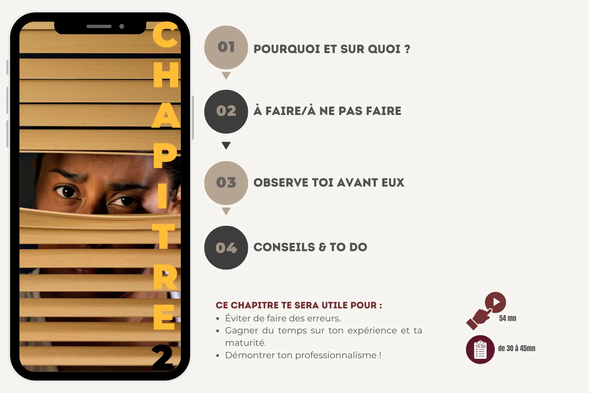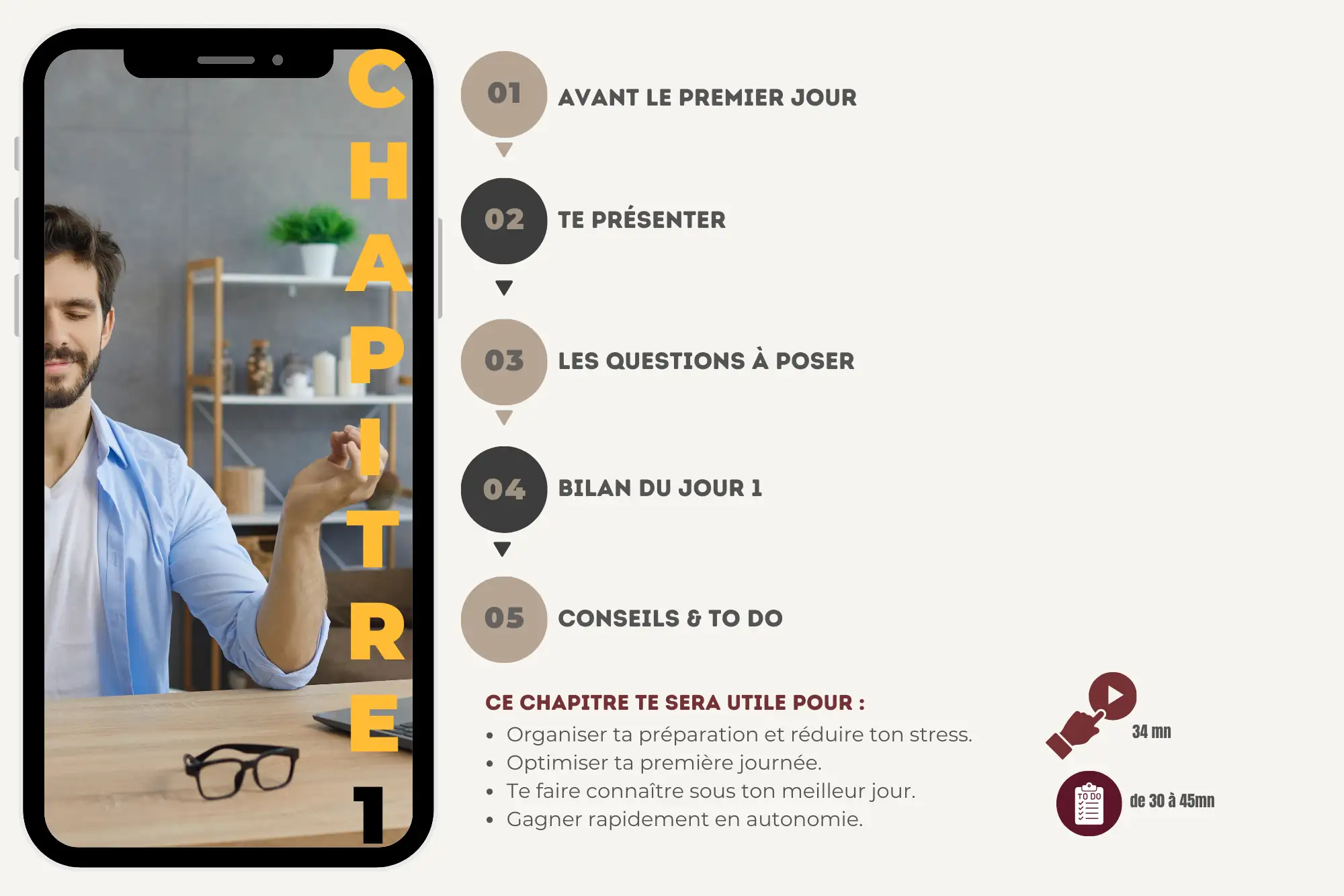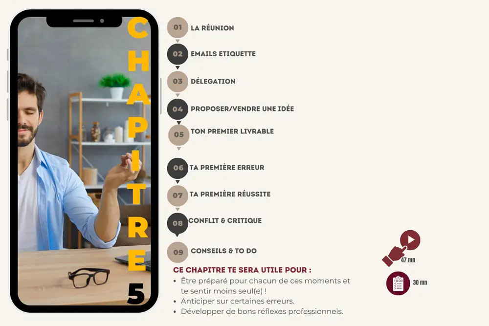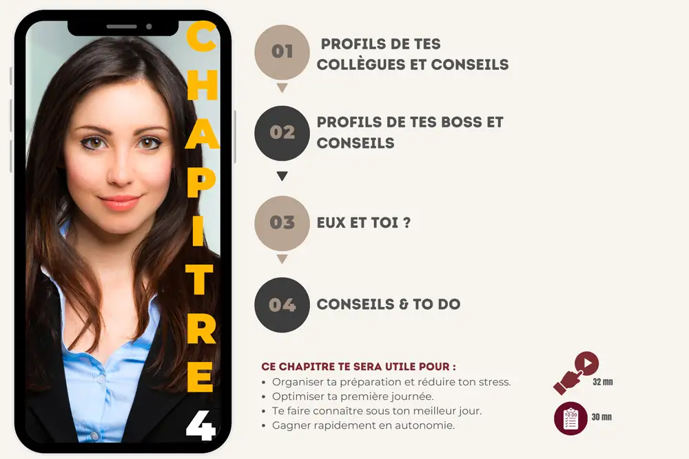 Dans la formation Transformer l’Essai, vous découvrirez les compétences clefs à renforcer (et qui vous aideront toute la vie), les points sur lesquels vous serez observer “en secret”, les erreurs à éviter, les profils de vos collègues et boss, les moments déterminants comme votre première réunion, votre première erreur ou votre premier livrable et la meilleure manière de réussir votre entretien d’évaluation de validation de votre pèriode d’essai